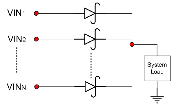 I wanted to be able to automatically combine all of the available inputs without problems. Simply wiring all of the inputs together would cause problems if, for example, a 20V power brick was connected at the same time as a 12V battery and would almost definitely cause damage to the battery (and probably everything else).